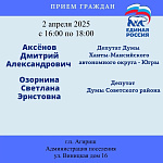 В администрации городского поселения Агириш планируется прием граждан по личным вопросам с Аксёновым Дмитрием Александровичем - депутатом Думы Ханты-Мансийского автономного округа - Югры седьмого созыва.